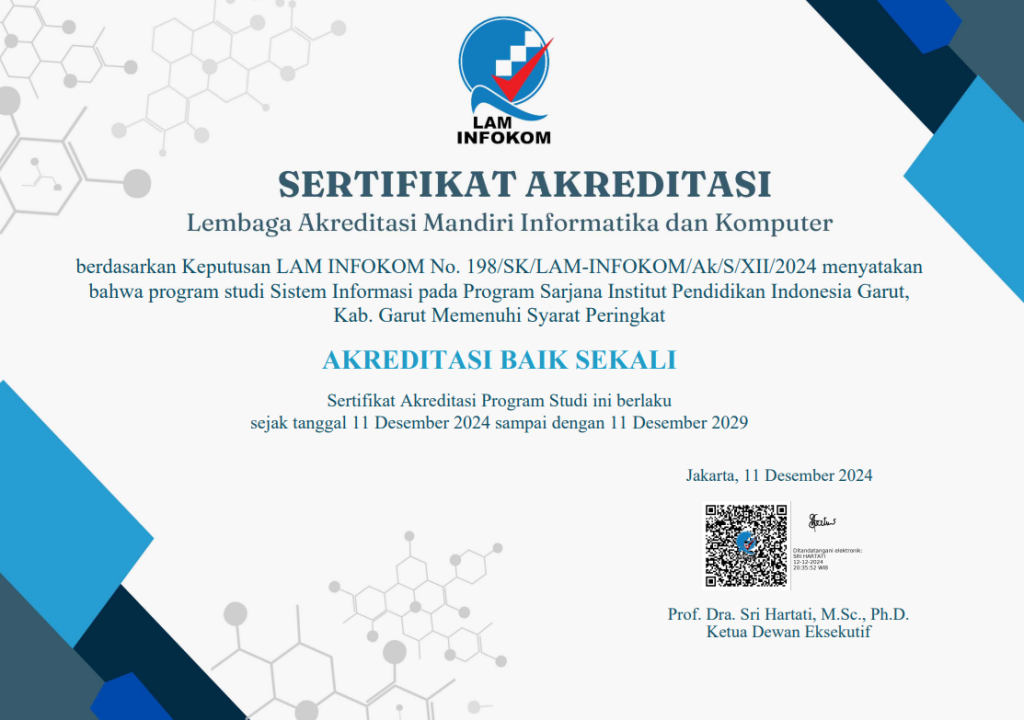 Program Studi Sistem Informasi merupakan salah satu program studi di bawah naungan Fakultas Ilmu Terapan dan Sains (FITS) Institut Pendidikan Indonesia Garut yang berfokus pada pengembangan keilmuan dan penerapan teknologi informasi dalam mendukung kebutuhan organisasi, bisnis, dan masyarakat. Prodi ini dibentuk untuk menjawab tantangan era digital yang menuntut sumber daya manusia kompeten dalam mengolah informasi, merancang sistem, serta mengelola teknologi secara efektif dan strategis.